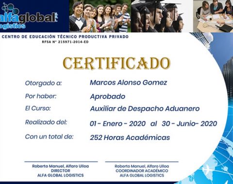 ALFA GLOBAL LOGISTICS S.R.L. es Promotora del CETPRO “ALFA GLOBAL” autorizada mediante RFSA N° 215971-2014-ED, (UGEL 02) formando jóvenes emprendedores competitivos, para que se inserten en el mercado laboral y puedan brindar los conocimientos adquiridos en los diferentes Operadores del Comercio Exterior y Aduanas.